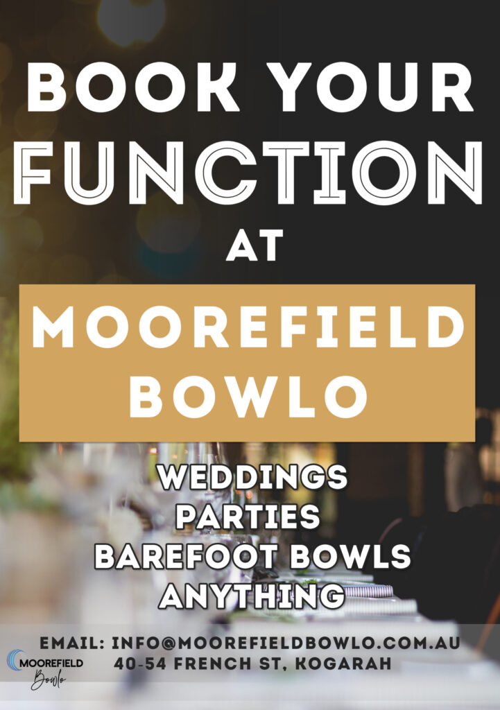 To check availability or discuss your event requirements, please contact us via email at info@moorefieldbowlo.com.au or via phone 95876299.